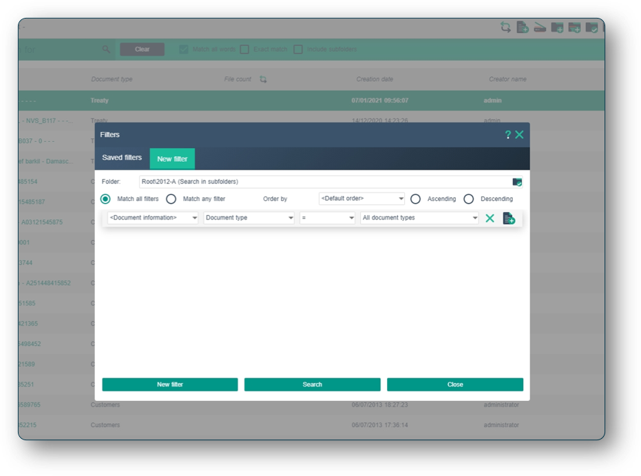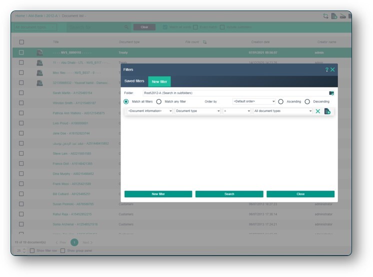 - Users can search everywhere including the content of documents and annotations, and favourite searches can be saved for reuse.