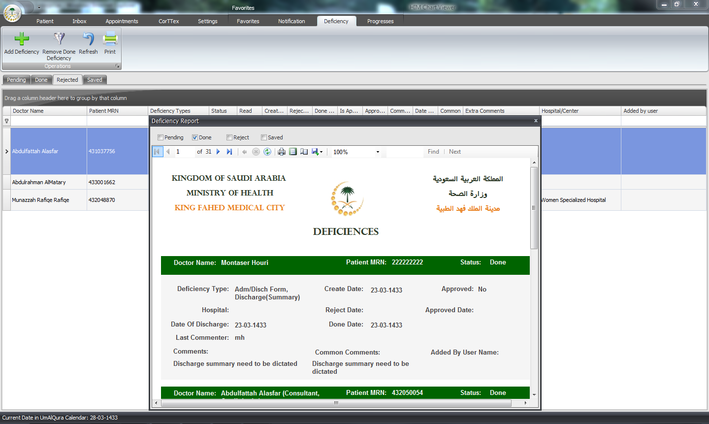 - Medical charts in MedLogic eHIM are arranged and classified to meet the requirements of the JCI standards when it comes to medical records.