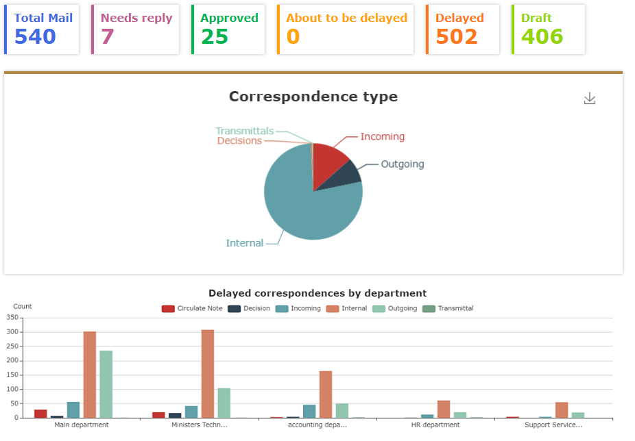- Tarasol helps you stay on top of your work by providing you with a real-time dashboard powered by customizable analytical reports on virtually anything you need to track, starting with correspondence statistics, progress on action points, all the way to the productivity of a certain user or department.